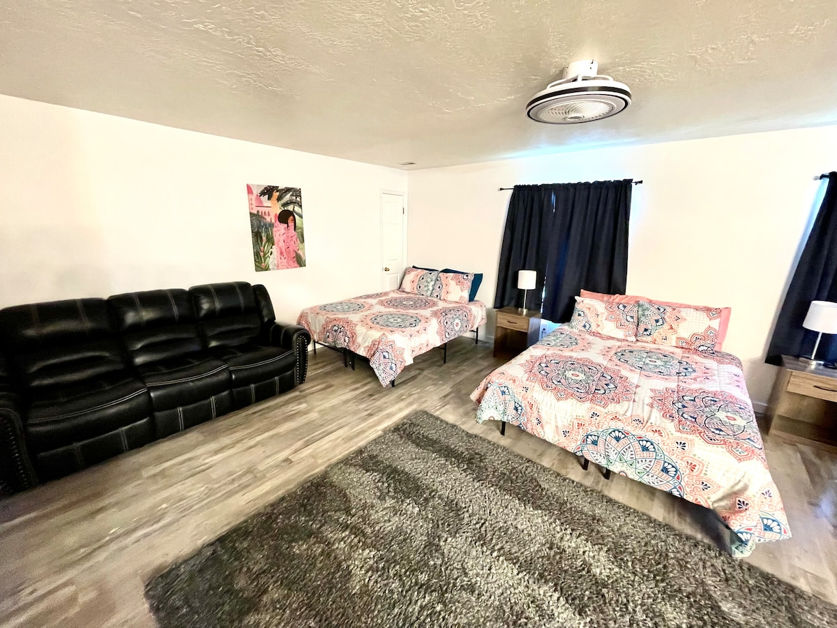 Tu familia estará cerca de todo con una estancia en Desert Edge. Estamos convenientemente ubicados cerca de San Rafael Swell, Joe's Valley, Huntington State Park, Cleveland Lloyd Dinosaur Quarry... ¡y mucho más! ¡También estarás a solo unos pasos de nuestra pequeña tienda de comestibles de la ciudad! Este acogedor apartamento de 2 dormitorios se encuentra en el sótano de nuestra casa, ¡por lo que es muy fácil para nosotros satisfacer todas tus necesidades! ¡Una entrada privada para vehículos, una entrada para salir y un patio te dan la posibilidad de ir y venir a tu antojo!