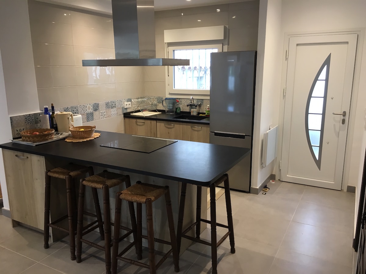 Casa de vacaciones al centro de Sant Pere Pescador. Suite con cama de matrimonio, bañera de hidromasaje y aire condicionado. Segunda habitación, litera 190x90 y espacio de teletrabajo. Aseo con ducha en la misma planta. Cocina abierta totalmente equipada, barra americana, comedor y televisión. Espacio de descanso en la primera planta con sofá y sillones y wc de cortesía Espacio de lavandería . Mesa y sillas de exterior. Petfriendly Perfecto para disfrutar en la familia de la Costa Brava.