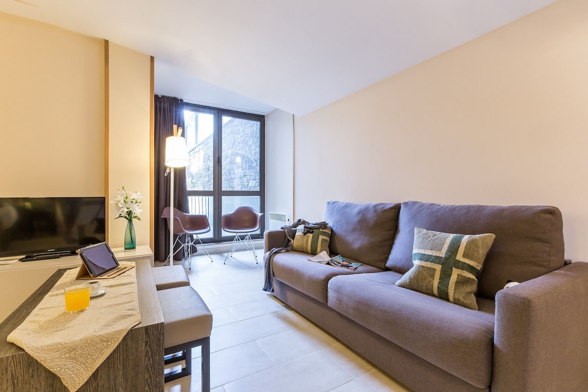 Moderno estudio amueblado con balcón y vistas a la montaña