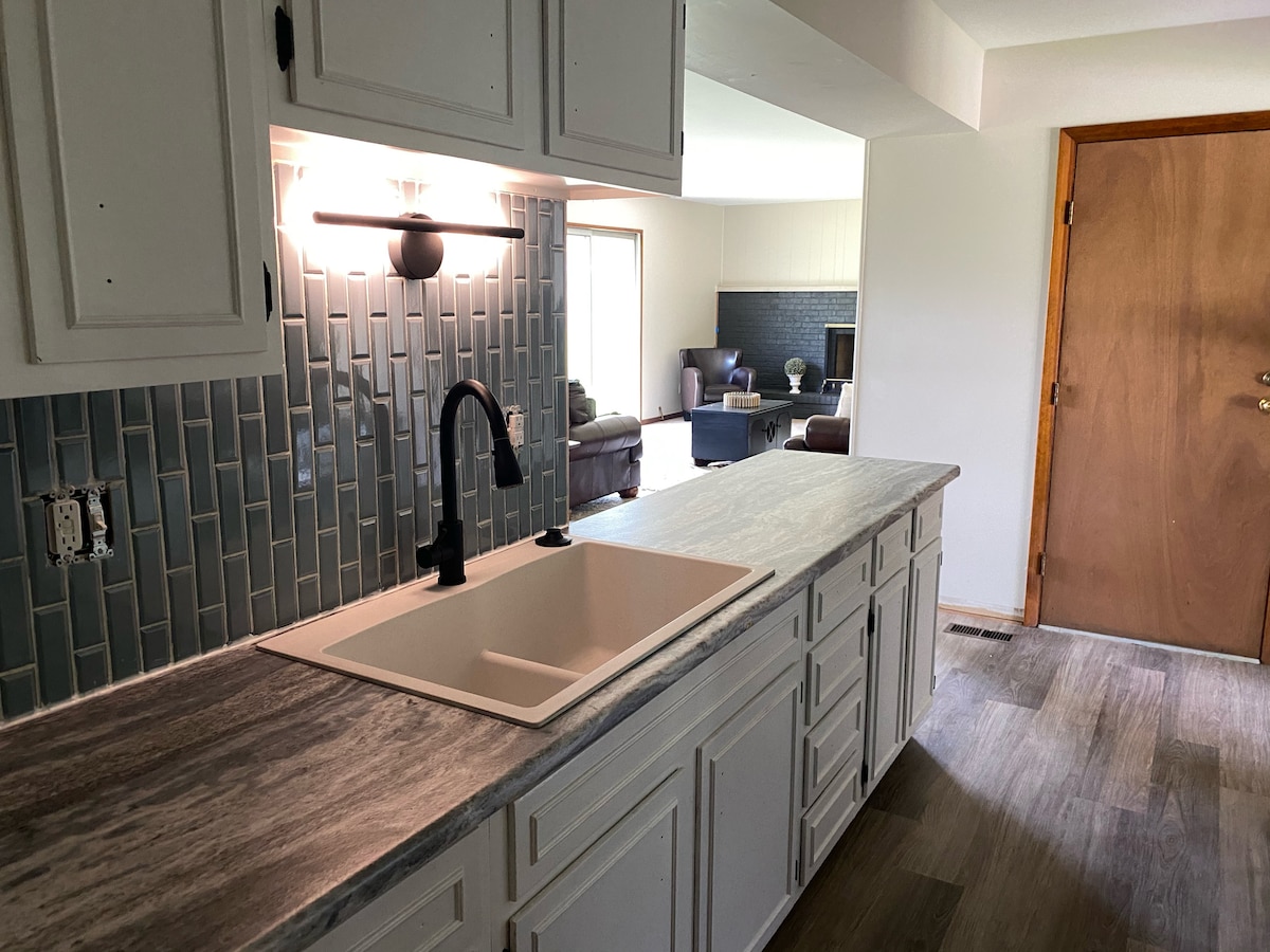 Ya sea que estés buscando un lugar para pasar el tiempo o simplemente pasar, creemos que lo encontrarás bastante encantador aquí. Estamos a solo 5 millas de la I70 y con una ubicación céntrica entre muchos lugares de interés. Sal o quédate dentro. ¡El espacio al aire libre es bastante espectacular! Privado, con un jacuzzi, fogata (leña proporcionada), césped para jugar al maíz. En el interior ofrece todas las comodidades de casa con cocina completa, lavandería, espacio de trabajo y acogedora chimenea.