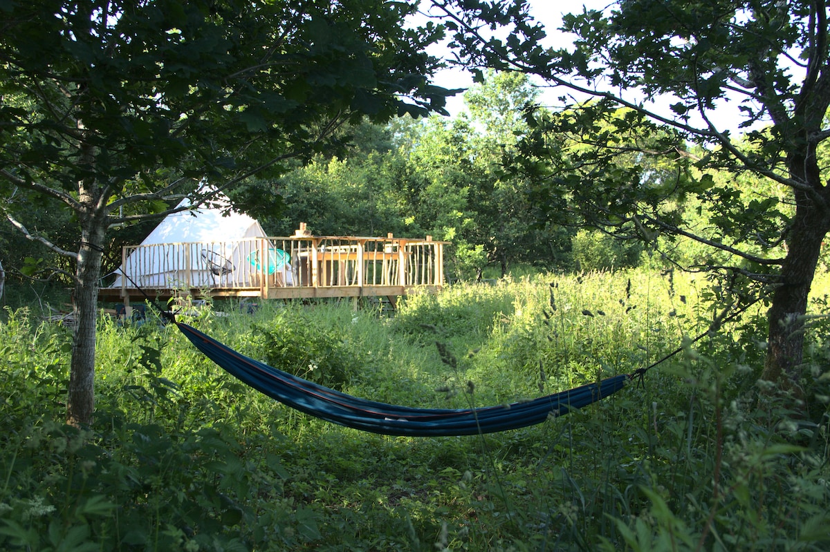 Entire glamp site. Meadow, hot tub, back to nature