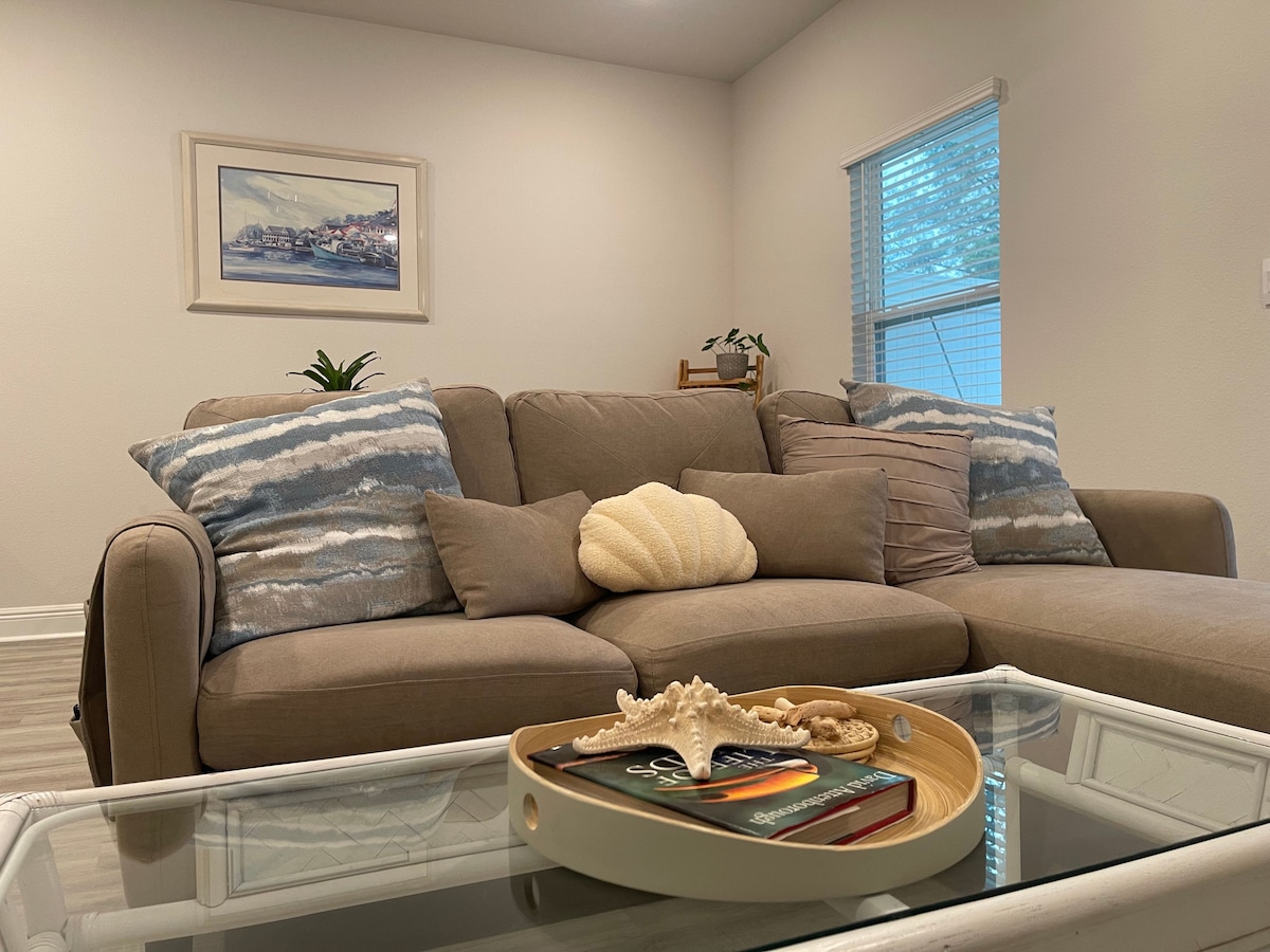 Disfruta de este estudio económico, luminoso y acogedor, ubicado en el centro de 9 millas, que ofrece un acceso muy conveniente a tiendas esenciales y excelentes restaurantes. El diseño ofrece una cama cómoda, un sofá acogedor, cocina completa, baño limpio y lavadora/secadora. Relájate frente al televisor con una suscripción gratuita a Netflix. Con acceso rápido a la rampa de entrada I-10 a solo 5 minutos y la playa a solo 30 minutos de tu puerta, este espacio limpio y conveniente es la base ideal para trabajar o viajar.