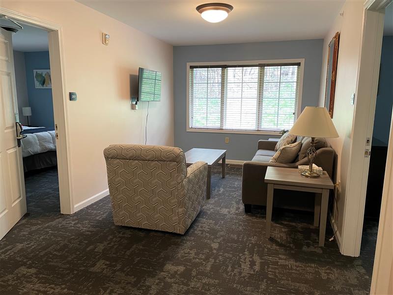 Escápate a esta acogedora cabaña en Tully, NY. Ya sea que estés esquiando, haciendo senderismo o simplemente relajándote, esta acogedora cabaña en suite de hotel boutique ofrece comodidad de estilo hotelero y un ambiente relajante. A minutos de Song & Labrador Mountain y Siracusa. ¡Reserva tu escapada perfecta ahora! Cada unidad incluye una suite con un baño grande, ducha a ras de suelo, escritorio, mininevera y cafetera. La suite 5 puede conectarse opcionalmente con la suite 6 a través de una puerta de comunicación, que se bloquea desde ambos lados.