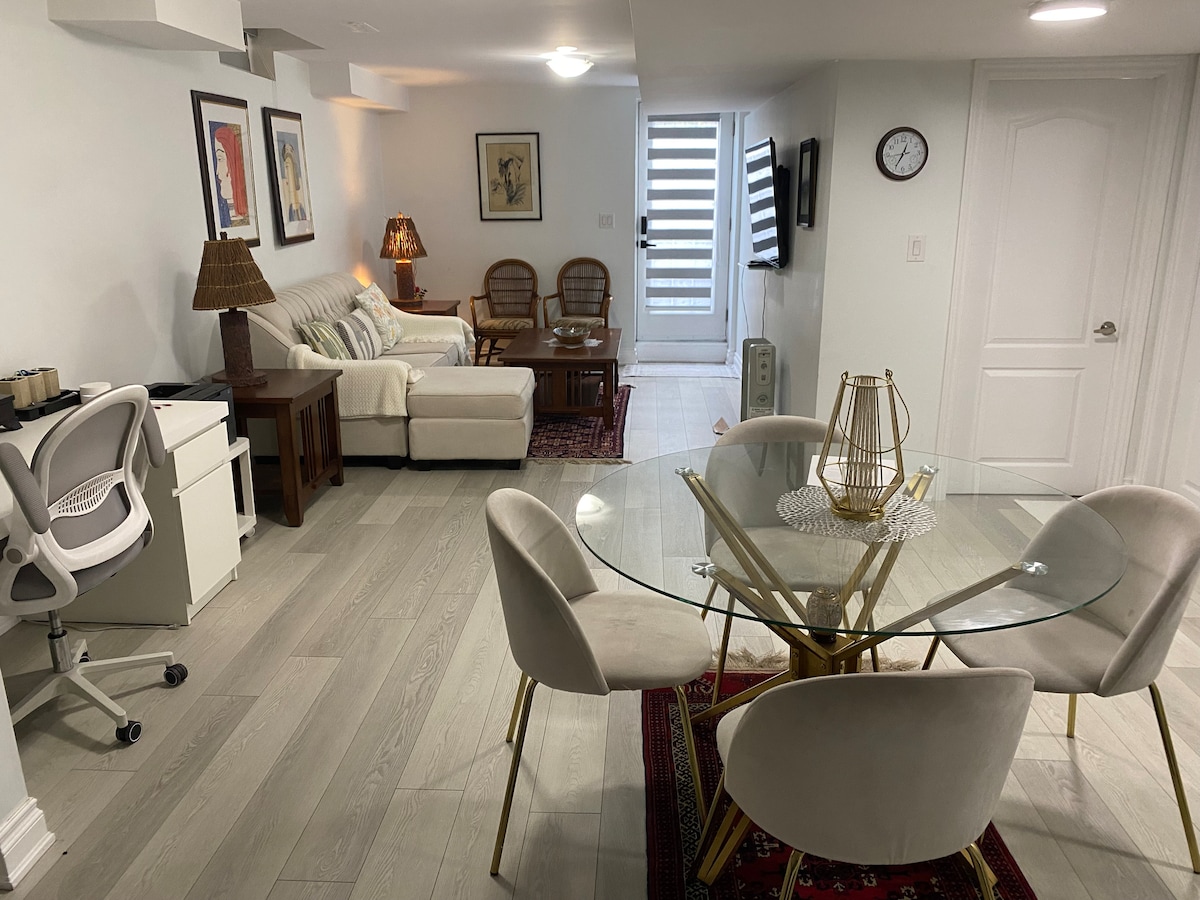 Esta elegante suite privada atiende a aventureros solitarios, parejas y viajeros de negocios. Tiene un baño privado, cocina pequeña y un acogedor patio trasero, junto con una cómoda cama tamaño queen, TV con canales ilimitados e internet de alta velocidad. A solo 5 minutos de la autopista 401, fácil acceso a los hospitales, el aeropuerto YYZ y Toronto Premium Outlet. Los restaurantes, las tiendas de comestibles y el transporte público están a pocos pasos. El cercano parque Glen Eden ofrece esquí y senderos para los amantes del aire libre.