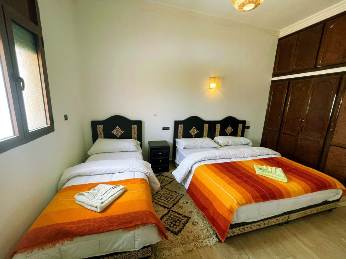 Nuestro New Tradional Dar Yan Apart abre sus puertas para aquellos que quieran experimentar la hospitalidad marroquí en su mejor momento sin renunciar a un cierto sabor de modernidad. Ubicado en el área de estrategia a 1 km del aeropuerto de Errachidia y a 800 metros del centro de la ciudad , Dar Yan Apart cuenta con 4 cómodos dormitorios y suites bellamente adornados con la artesanía local para experimentar fascinación adicional, cada una decorada en su propio estilo . Todas nuestras habitaciones y suites están exquisitamente decoradas y amuebladas.