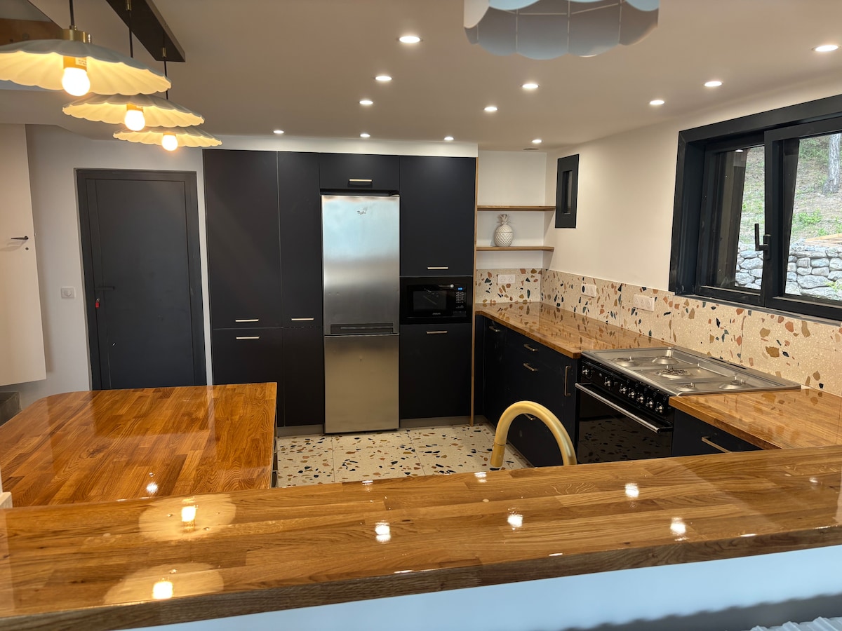 El estudio de 30 m² se encuentra bajo las bóvedas del antiguo horno de pan de nuestra casa. La sala de estar consta de una pequeña cocina equipada con lo esencial, así como una zona de dormitorio con una cama doble; en la parte inferior de las bóvedas se esconde un pequeño baño independiente. Aislado en el campo al pie de las montañas, la terraza privada le ofrecerá una hermosa vista del valle de la Durance. Ideal para relajarse también puede disfrutar de salidas para pasear y del sitio de escalada.
