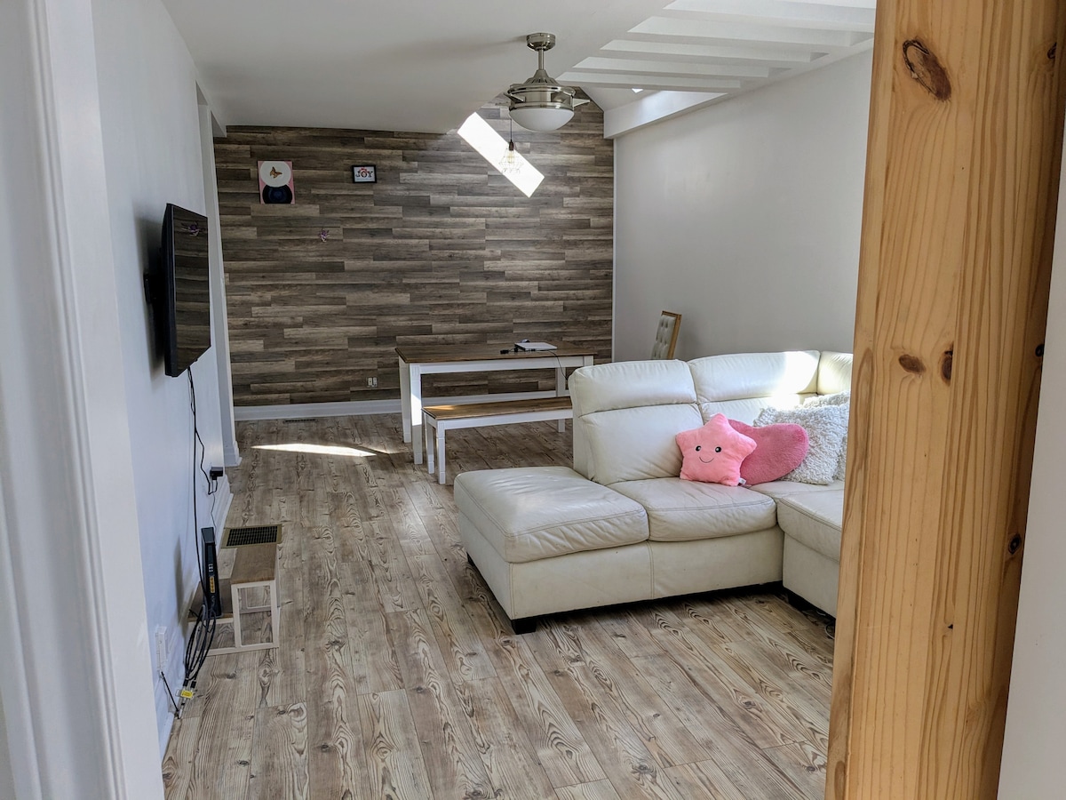 Descubre tu escapada de 4 dormitorios y 2 baños con acabados de primera línea, decoración impresionante y cómodos colchones tamaño queen en todas las habitaciones. A 1 minuto de un parque, a 3 minutos del centro de la ciudad, a 5 minutos de la frontera de Detroit. A 5 minutos de la autopista. A menos de 10 minutos del 401. También hay un salón completo y un espacio para eventos disponibles para alquilar para fiestas privadas. Internet, lavandería, toallas limpias y artículos de tocador, todo incluido.