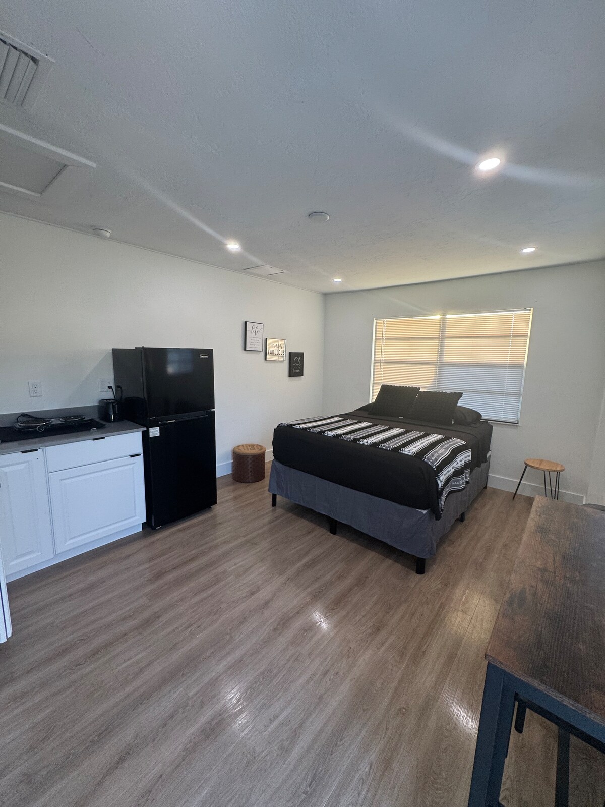 ¡Una forma muy barata de acercarse a la playa y todavía tener total privacidad! Toda la unidad: no compartas nada. Pequeño y acogedor estudio/habitación 12x19 con refrigerador, microondas, aire acondicionado, baño completo, adecuado para dormir más o menos. Cama tamaño queen. Armario y vestidor. Esta es una habitación de invitados separada con entrada privada no conectada a otra unidad. Ubicado en un adorable complejo de ambiente tropical en un edificio verde de espuma de mar.