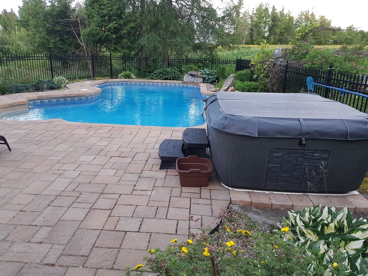 Antes de reservar, lee la descripción completa. A 1 hora en coche de Montreal, llegarás a los pintorescos municipios del este. Esta hermosa casita centenaria se encuentra en 76 acres con un bosque y arroyos serpenteantes. La piscina enterrada está abierta de junio a septiembre (no está climatizada). La casa es luminosa, limpia y tiene un ambiente cómodo. Cuenta con cocina totalmente equipada, terraza, barbacoa y la fogata es toda una delicia. Los senderos del patio trasero te llevarán al bosque.