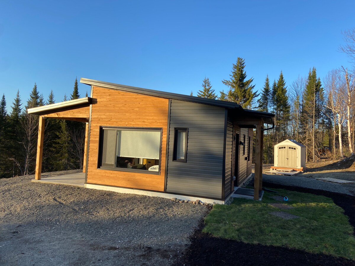 CITQ: 308387 Tiny house con un look country. Magnífica cabaña cerca del monte Ham. Gran sala de estar al aire libre con spa, así como todas las comodidades necesarias en el interior. En las noches de verano, se pueden oír las campanas de las vacas y admirar las estrellas. Se puede acceder a un pequeño arroyo con piscina natural para refrescarse. -Estufa de leña interior y exterior. -Leña a voluntad en el lugar, pero leña para encender el fuego debe traerse. -1 cama queen, 2 camas individuales y un sofá cama
