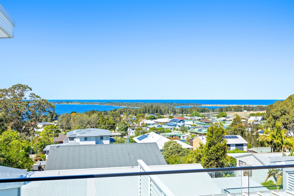 Winkipop Broulee is a stylish town house. The air conditioned top floor has an expansive open lounge/dining area featuring high ceilings, a polished concrete floor and private treed views. The house is one minute walk to the beach. Kitchen is fully equipped with caesar stone bench tops, Miele dishwasher and microwave oven. Deluxe bathroom has a shower and bath with separate toilet. All linen is supplied including bath towels. Secure parking for two cars with internal access.