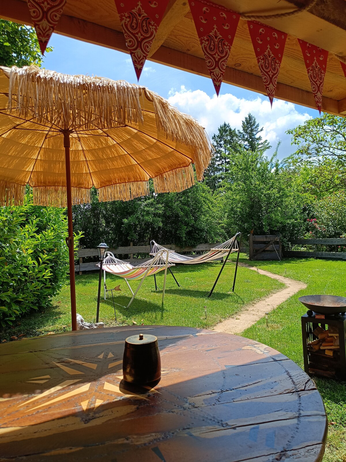 Bienvenido al idilio vacacional en el borde del bosque. La propiedad se encuentra en nuestra propiedad, rodeada de la naturaleza única de Mecklenburg Suiza. Ubicado en el paisaje montañoso, encontrarás pura relajación aquí. El complejo de edificios consta de una gran yurta para dormir y vivir y una cabaña en la que se encuentran la cocina totalmente equipada y el baño con agua caliente. Disfruta de los momentos en la sauna, junto al estanque, junto a la fogata, en la hamaca o en el jardín de flores.