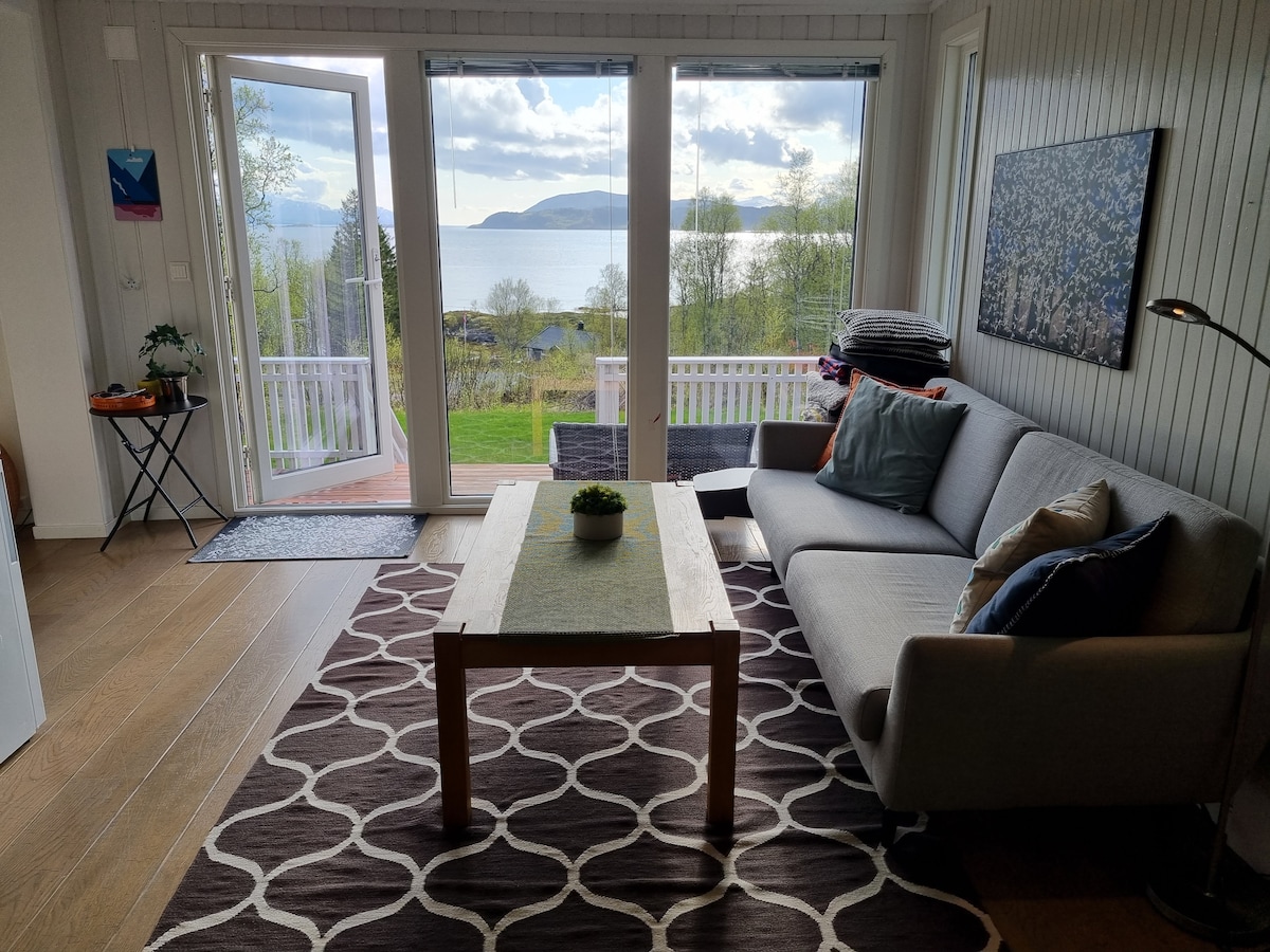 Hytte med sjø utsikt, kort til Narvik og Lofoten