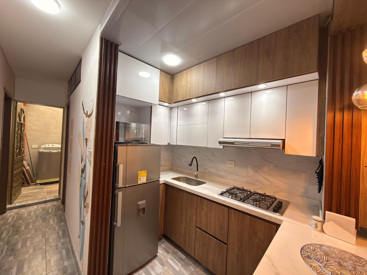 Disfruta de la sencillez de este alojamiento tranquilo y céntrico. Un espacio nuevo y pensado para tu descanso. Apartamento recién remodelado con sala cómoda, sofá cama, WiFi y Netflix. Cocina integral equipada con isla. Dos habitaciones con camas dobles, colchones El Dorado, clóset y blackout. Baño con agua caliente y patio de ropas con lavadora. Perfecto para sentirte como en casa. 📍 Reserva ahora y disfruta de una experiencia confortable, conectada y acogedora.