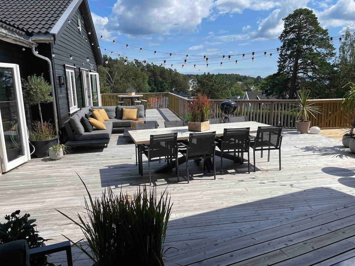 ¡Quédate genial en el paraíso vacacional Nøtterøy! Esta casa es perfecta para parejas o una familia. Proximidad al embarcadero en Tønsberg con lo que puedes desear, desde la vida nocturna, tiendas, cafeterías, etc. A poca distancia a pie de, natación/parque infantil, circuito de fútbol, terreno forestal y muchas playas excelentes en la zona. Aquí encontrarás cargador de autos eléctricos, buen estacionamiento y espacio para bicicletas. Es una casa bien equipada, espaciosa y elegante de alto nivel. Si es necesario, hay un tocador, 2 cunas, juguetes y sillas altas disponibles. Parada de autobús a 50 m de la puerta.