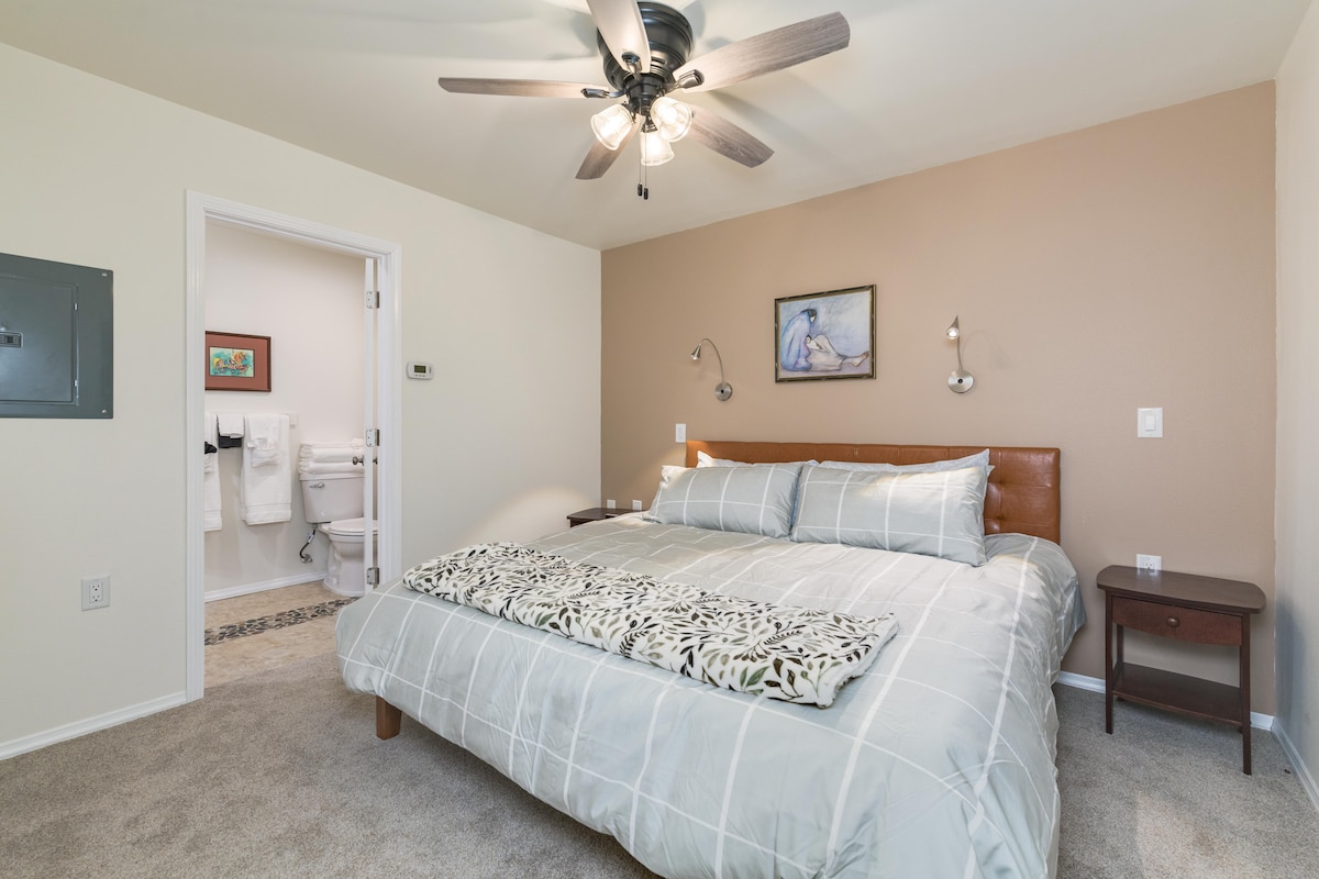 Acabamos de construir este moderno apartamento de Alaska pensando en dar la máxima comodidad y experiencia a nuestros huéspedes. Disfruta de una relajante bañera de hidromasaje con ducha de azulejos personalizada. Ponte cómodo en el sofá de cuero reclinable viendo una película en la televisión de alta definición. Duerme cómodamente en la cama tamaño king de espuma viscoelástica. Cerca del aeropuerto, UAF, restaurantes, senderos, tiendas y atracciones turísticas. ¡Lavadora y secadora en la unidad! Ofrecemos algunos artículos para el desayuno como avena instantánea, mezcla para panqueques, té y café.