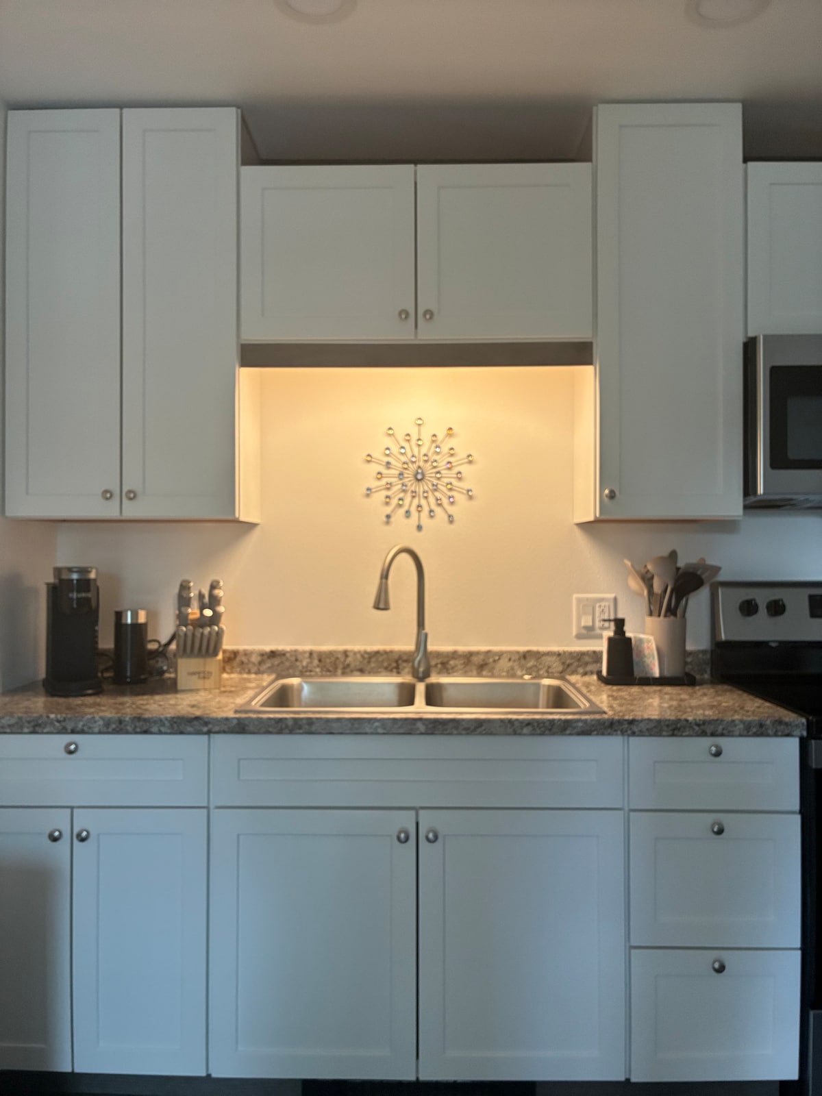Situado a 3,7 millas/7 minutos del Aeropuerto Internacional de Fairbanks. En el interior, un dormitorio con sala de estar grande, colchón adicional en el armario para grupos grandes. Registro de entrada y salida autónomo. Internet de alta velocidad y TV curva de 65 pulgadas con suscripción a Netflix, Hulu, Disney+ y Prime Video. Toalla y artículos de aseo de cortesía para los huéspedes. La cafetera y la tostadora se encuentran en la cocina de tamaño completo. El exterior está asegurado con cámara de seguridad, increíble vecindario.