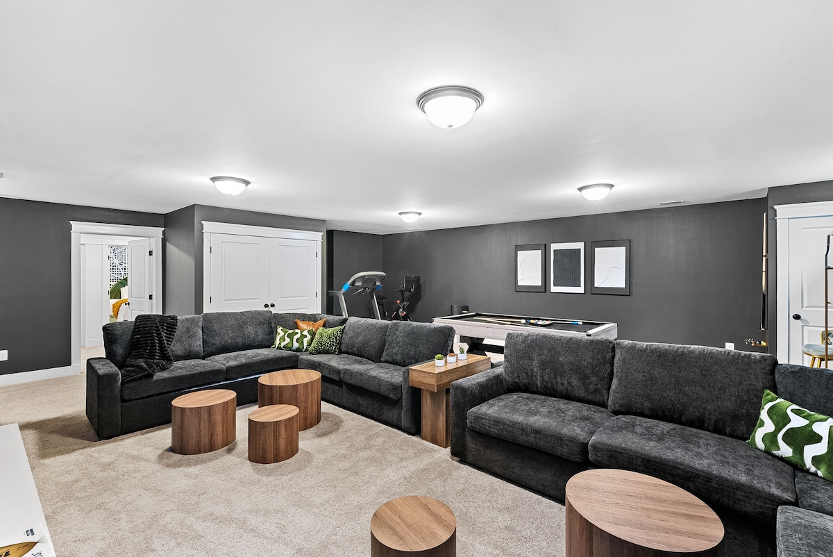 Perfecta para familias o grupos, esta espaciosa casa de 5 dormitorios y 4,5 baños ofrece comodidad, conveniencia y lujo. Relájate en la sauna privada ubicada en la suite principal, disfruta de un wifi increíblemente rápido y aprovecha el amplio estacionamiento. Con varias salas de estar, una cocina totalmente equipada y servicios modernos en todas partes, este alojamiento es ideal tanto para escapadas cortas como para estancias prolongadas. Ya sea que estés aquí para relajarte o explorar, te sentirás en casa.