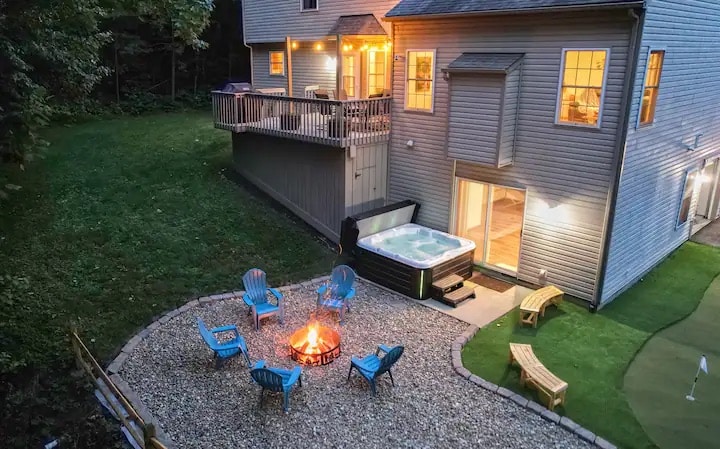 Reconnect with nature at this unforgettable escape. Enjoy the seclusion and wonderful outdoor space this property has to offer. Over 700+sq foot of outdoor living including two decks, hot tub, fire pit, covered patio and outdoor shower. Your bound to encounter the many wildlife as your surrounded by over 100acres of woods. Onsite property shares playground. Walk through the surrounding woods on the property trails. Relax and unwind at this Picturesque Cottage.