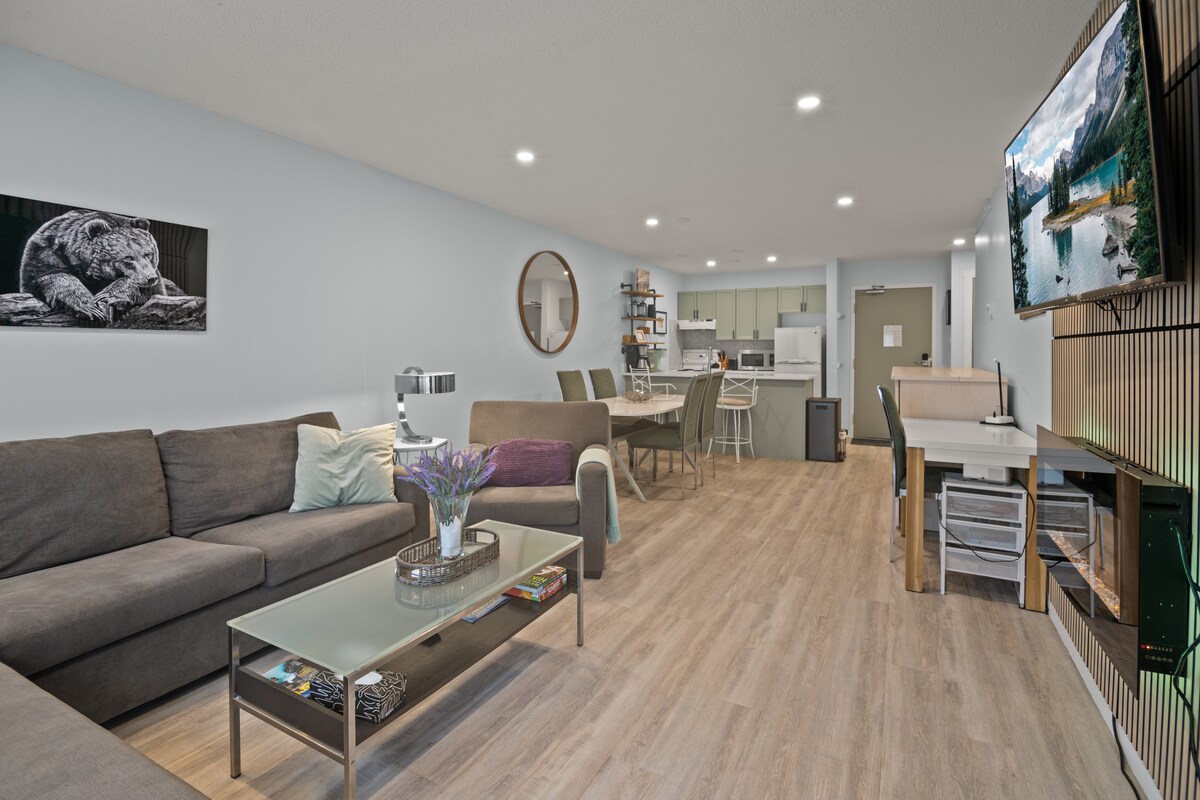 Come and recharge at Fairmont Oasis. This Scandinavian-inspired condo sits on the lovely Riverside Golf Course, surrounded by mountains and mature trees. It’s the ideal spot for you to escape routine, slow down, and get lost in the mountain way of life. Whether you’re an outdoor enthusiast or just want to pretend, this is the perfect base camp to explore, with access to boundless wilderness and cozy privacy. This unit is pet-friendly for those wanting to bring their fur baby along with them.