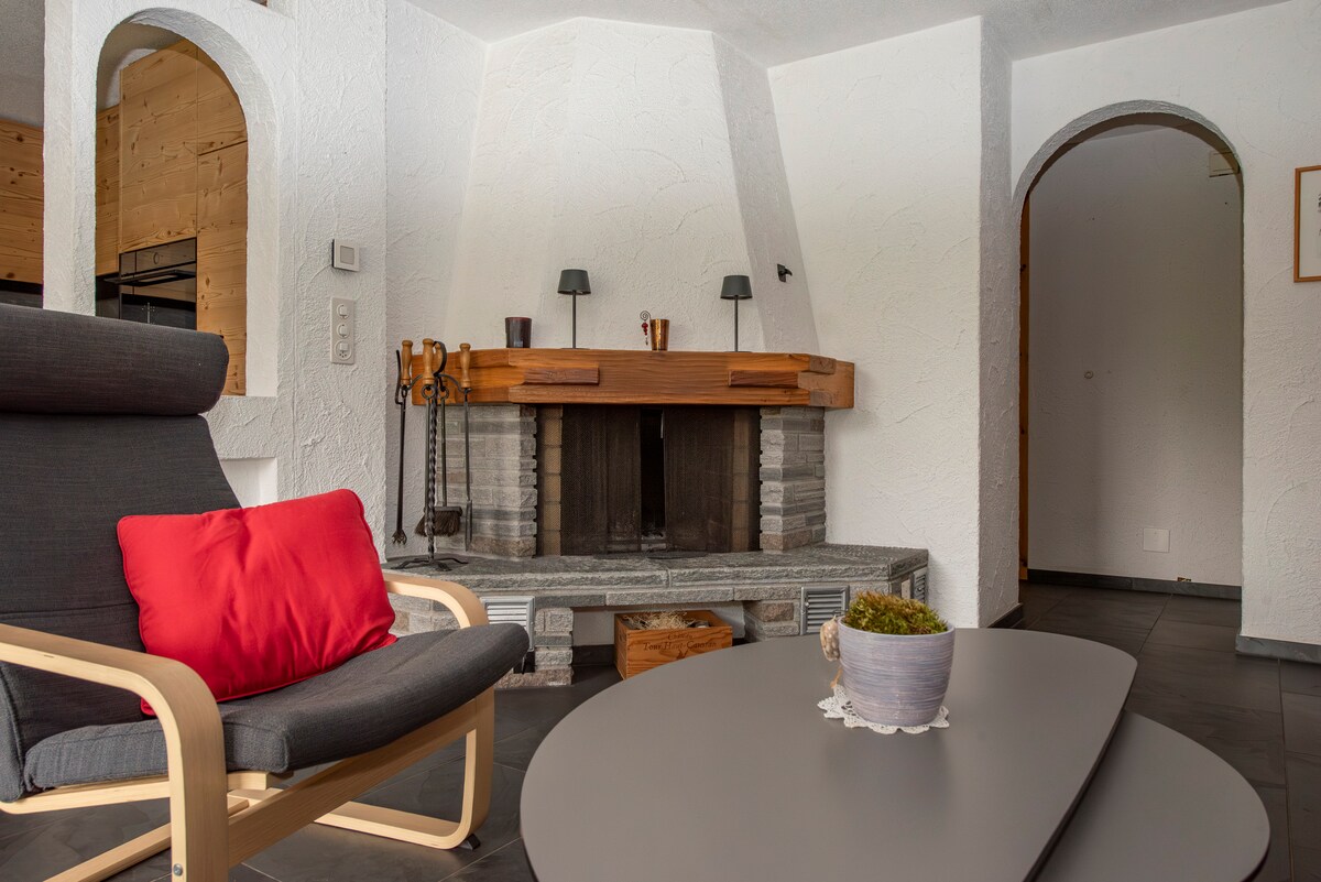 Entspanne dich in diesem einmaligen Rifugio. Im Jahre 2020 total sanierte 2 1/2- Zimmerwohnung, deren Interior Design komplett neu gestaltet wurde. Als Loft mit edelsten Materialien (Valser Granit, Schlossparkett, viel Altholz, freistehende Wanne, Eisenkamin auf zwei Seiten geöffnet, Designarmaturen) ausgebaut. Mit geschütztem Gartensitzplatz und Garten. Sonnige, ruhige Lage. Eigener Hauseingang, Sauna im Nebengebäude. Ski in, ski out oder Skibus in drei Minuten erreichbar.