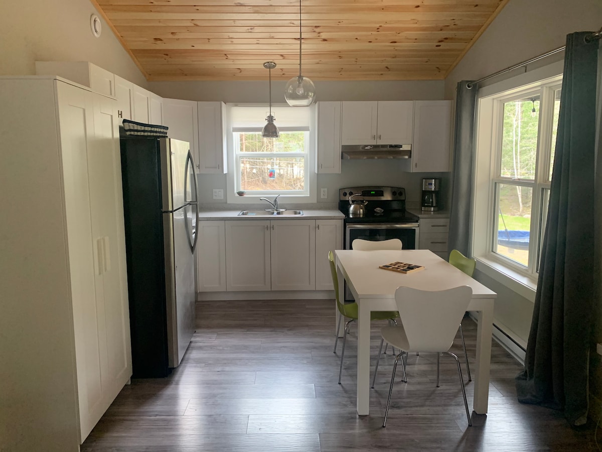★ Disfruta de la paz y la comodidad de esta luminosa casa de vacaciones de lujo para 4 estaciones ubicada en un bosque privado junto al lago Falls, a solo 60 minutos de Halifax. Nuestra rústica casa del lago está totalmente equipada, con aire acondicionado central, cómodamente amueblada y cuenta con una hermosa cocina de granito con barra de desayuno, electrodomésticos nuevos y 2 baños completos. Tiene vistas al prístino lago Falls y cuenta con un pozo para hacer hogueras, un muelle, una balsa para nadar, 2 canoas, 2 kayaks, 2 tablas de paddle surf, un bote de remos y muchos chalecos salvavidas. ¡A 20 minutos de Ski Martock!