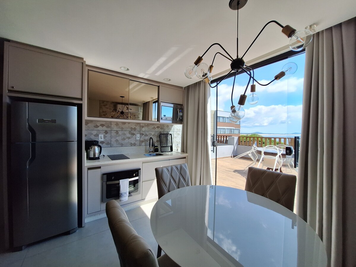 Loft amueblado, a 300 metros del mar con vistas al amanecer, el faro y el mar de Prainha. Con capacidad para 3 personas, aceptamos una mascota🐾 *Cuenta con terraza con vista al faro y al mar *1 Cama doble *1 Sofá cama * No proporcionamos ropa de cama/manta ni toallas de baño. *Smart TV *Wi-Fi *Estacionamiento * Piscina Termal *Sauna *Academia *Sala de juegos * Barbacoa *Calentador *Cocina completa