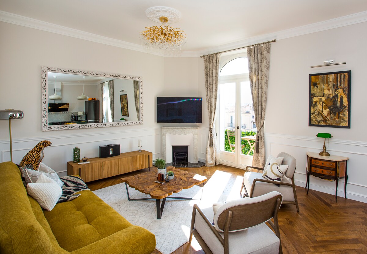El mármol italiano, el parqué de roble macizo y las telas de diseño se combinan para crear un suntuoso refugio en el corazón de Cannes. A tiro de piedra del Palais y de las playas bañadas por el sol, con vistas a los tejados de La Banane y al mar, este refugio diseñado por un arquitecto es una verdadera joya escondida. Bebe champán en el balcón, relájate en la bañera para dos y luego relájate con finas sábanas egipcias. No se escatimaron gastos en la cuidadosa restauración de este espacio burgués de Cannes de 1905. Consulta para reservas de conferencias.