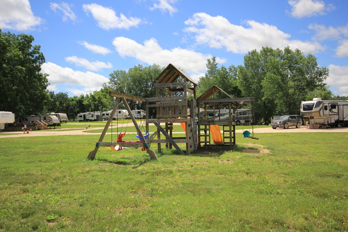 Auténtico granero de 19' tiene un loft con 2 camas de tamaño completo, cómodo espacio de estar con calefacción y aire acondicionado, baño con ducha de 3'x5', cocina pequeña, techo abovedado. Wifi disponible, pero básicamente estás dentro de una lata en un campo de maíz, por lo que la recepción NO ES GENIAL (por lo tanto, NO hay televisión). Una parrilla de gas, mesa de picnic y 4 sillas Adirondack rodean tu fogata. ¡Todo en los terrenos de una bodega y viñedo rodeado de 300 acres de maíz! Área recreativa estatal del lago Volga adyacente con un lago para remar, pescar y kilómetros de senderos.