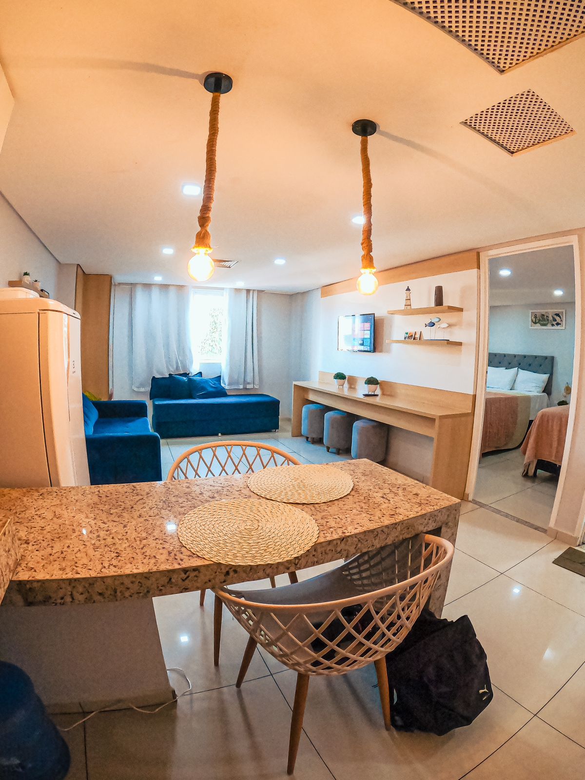 Acogedor apartamento en la mejor ubicación de João Pessoa, a pocos minutos de mercados, tiendas, restaurantes, iglesia católica y cerca de los principales atractivos de la ciudad. Se encuentra a 200 m del mar, a 100 m de la Feirinha de Tambaú y a 300 m del Mercado de Artesanía de Paraíba. Totalmente equipado, con aire acondicionado en los dos dormitorios y en la sala de estar, TV, Internet Wi-Fi de alta velocidad, estufa, nevera, horno microondas y utensilios de cocina.
