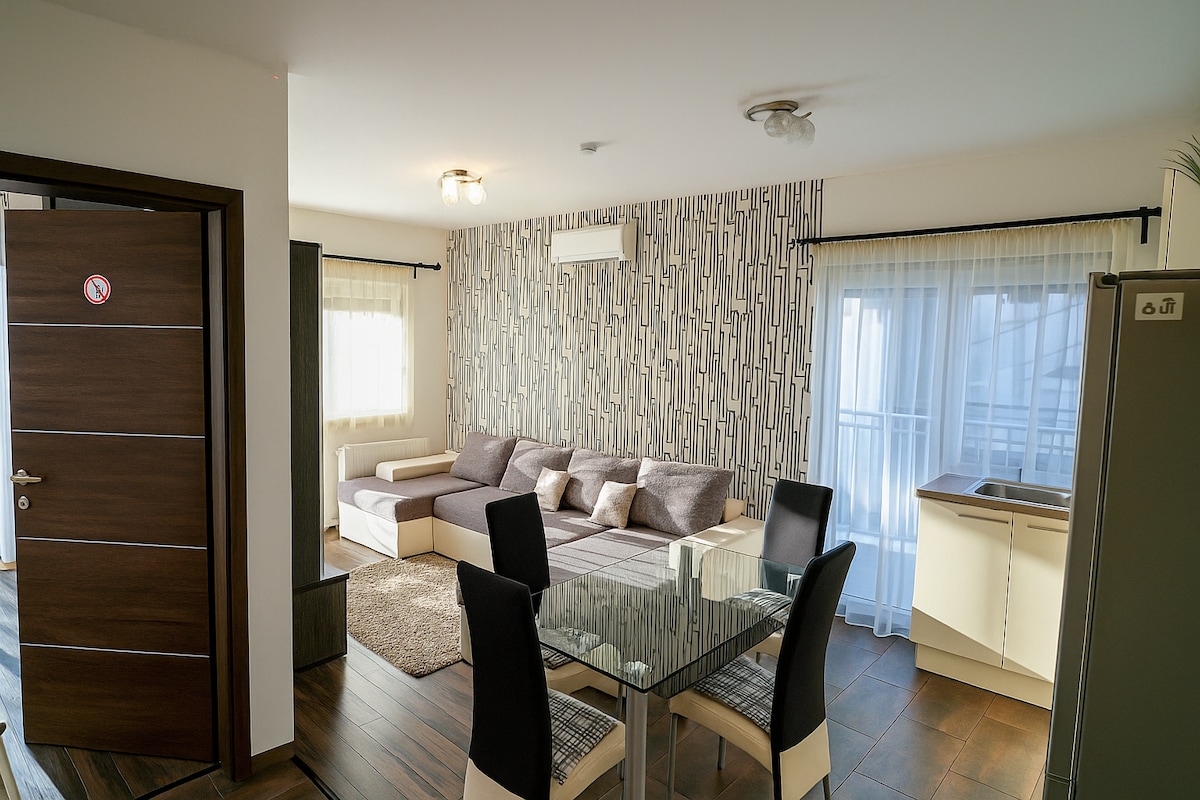 El alojamiento cuenta con un espacio de bienestar compartido único en la azotea (saunas, piscina de inmersión, jacuzzi, piscina para niños, piscina al aire libre) que espera a los huéspedes que desean relajarse durante todo el año. Debido a la excelente ubicación, el lujo y el estilo juvenil de nuestro apartamento, es ideal para grupos de amigos y parejas durante todo el año, y para familias fuera de temporada. El apartamento cuenta con calefacción y aire acondicionado en el techo, por lo que nuestros huéspedes pueden disfrutar de una temperatura agradable durante todo el año. Wifi disponible. Conocimientos lingüísticos