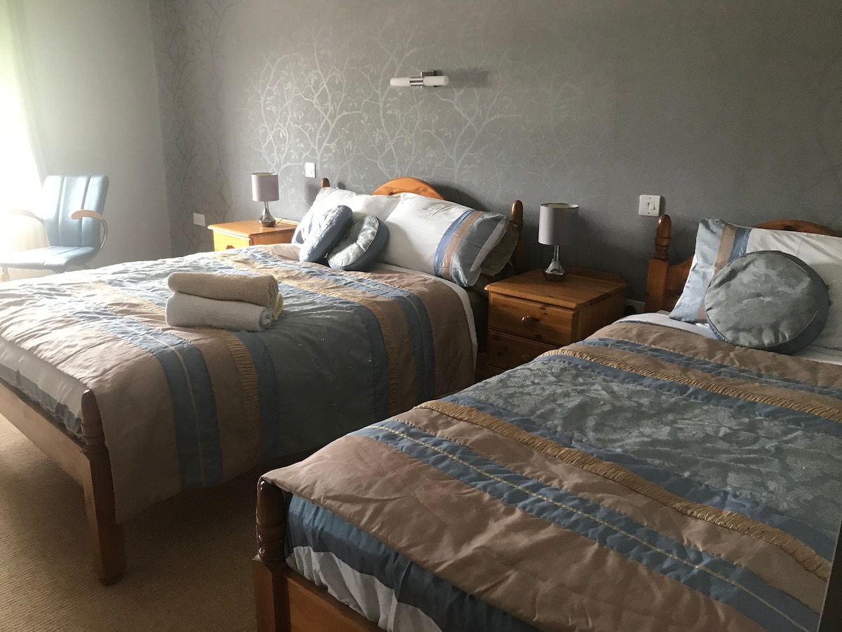 La planta superior de la casa es para tu uso exclusivo y está separada de la planta baja. 2 dormitorios grandes con capacidad para 8 personas. Hay una pequeña sala de estar con cocina y un baño con ducha. Exclusivamente para huéspedes. Se proporciona desayuno continental, té y café. Esta es una propiedad rural y a poco menos de 2 millas del pueblo local. Que tiene tiendas, bares, peluquerías, centro ecuestre y restaurantes. Estamos a 7 millas del Corrick House Hotel, a 8 millas de Omagh y a 18 millas de Enniskillen.