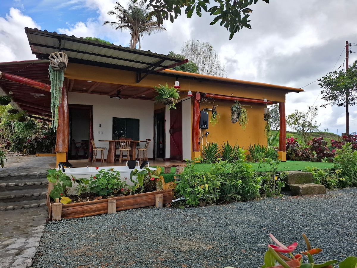 Situé dans notre plantation de café bio, la cabaña est construite en bambou et bois et profite d'une vue exceptionnelle sur les montagnes et le coucher de soleil. Elle dispose d'1 salle de bain, 1 chambre lit double, un espace salon et sa petite terrasse suspendue. Situé à 6 km de Filandia, accessible par les jeeps collectives ou privées ou en vehicule pas trop bas. Nous proposons un coffe tour, dégustations de nos produits artisanaux (pain, confitures, fromages type français, tartiflette, etc)