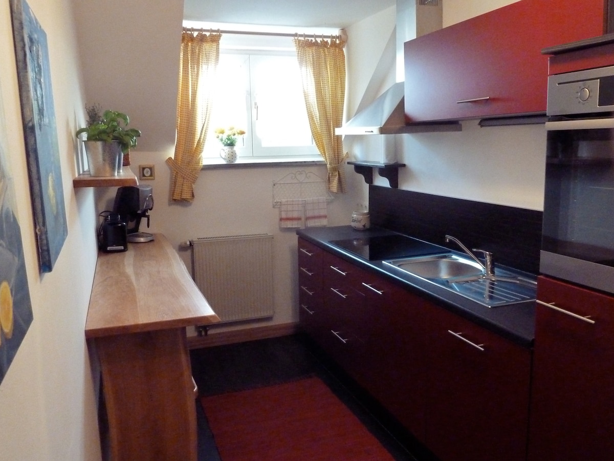 Moderne Ferienwohnung direkt am Lech. Die Wohnung besteht aus einer modern eingerichteten Küche ,Schlafzimmer (Doppelbett), einem Bad mit Dusche und Toilette, und einem Eingangsbereich mit Garderobe. Die Wohnung befindet sich zurückversetzt im Hof/Garten bzw. am Lech und komplett im 1. Obergeschoss.Über den Lech genießt man einen romantischen Blick auf das ehemalige Kloster St.Mang und das Hohe Schloss zu Füssen. Einkaufen, Bummeln, Essengehen... ohne Verkehrsmittel möglich.