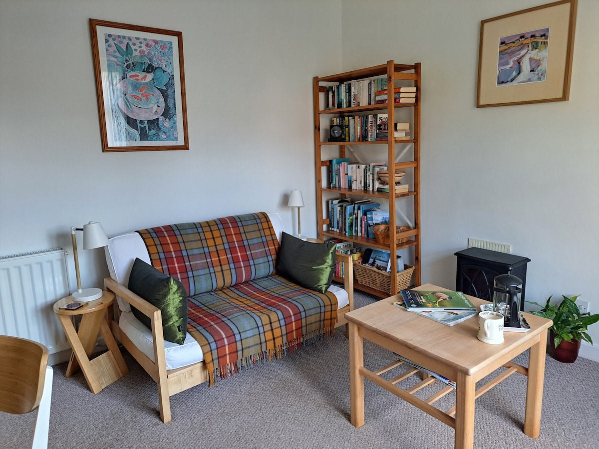 The cottage is located at the bottom of the main house's small private garden. It is quiet & secure. Half a minutes walk from Largs train station. Fully equipped for self catering. This studio style cottage has a shower room with towels ,shower gel, toilet rolls and handwash supplied. A small kitchen area with electric cooker, sink, fridge with ice box , kettle and toaster. The kitchen cupboard is stocked with complementary tea, coffee and cereal. The fridge will also be stocked ,fresh milk,etc.