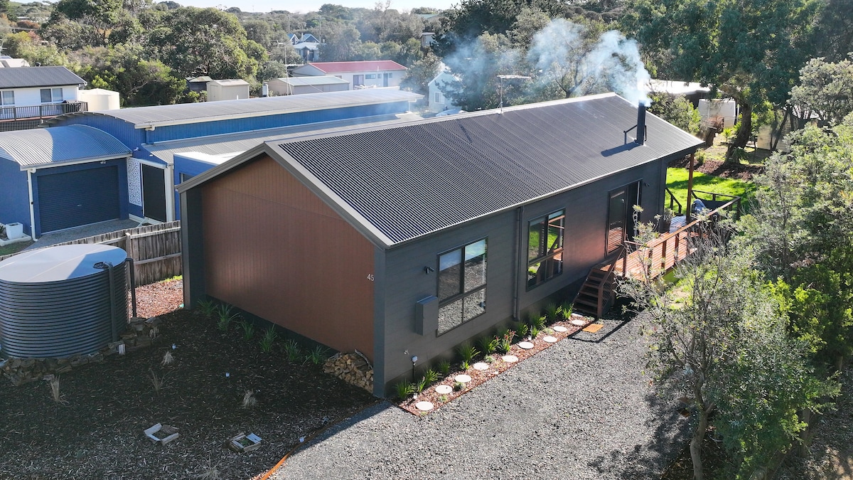 Beekeepers is an ultramodern contemporary architectural off-grid house on the coast situated in a 640-acre sanctuary overlooking Bass Strait. Chill, whale watch, walk, fish, surf, and re-energize.The completely private house sleeps 10 and is perfect for enjoying the views either on the deck or beside the fire.