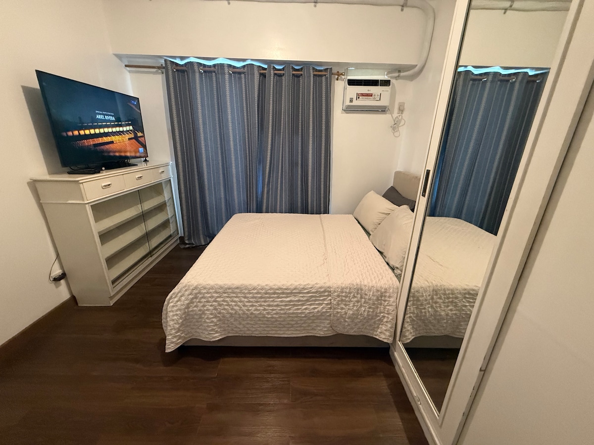 ¡Bienvenido, querido huésped! El espacio incluye un pequeño balcón y está equipado con WiFi y TV por cable. Después de hacer la reservación, envía una copia de tu documento de identificación válido por correo electrónico, Viber o el chat. Hay estacionamiento disponible en el sótano del edificio. Las tarifas son las siguientes: ₱ 50 por las primeras 3 horas y ₱ 30 por cada hora adicional. Ten en cuenta que hay una tarifa adicional de estacionamiento nocturno de ₱ 200 si estacionas después de las 2:00 a. m. para el día siguiente. La unidad tiene capacidad para un máximo de 2 adultos y 1 menor.
