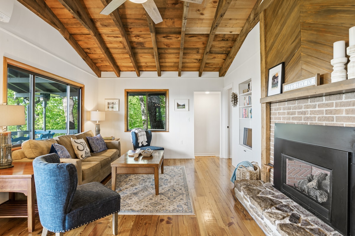 Despiértate con vistas a la montaña en nuestra cabaña de estilo alpino moderno y rústico, un refugio tranquilo para parejas, familias o dos parejas. Reúnete alrededor de la mesa del comedor con vistas a la ventana, relájate en la soleada terraza en la copa de los árboles o relájate junto a la estufa de leña después de un día explorando las montañas Blue Ridge. Renovada por nosotros con un toque industrial-rústico, The Tree House está ubicada en el centro cerca de Hendersonville, Flat Rock, DuPont State Forest, Brevard, Asheville y Blue Ridge Parkway. Wifi rápido de Starlink.