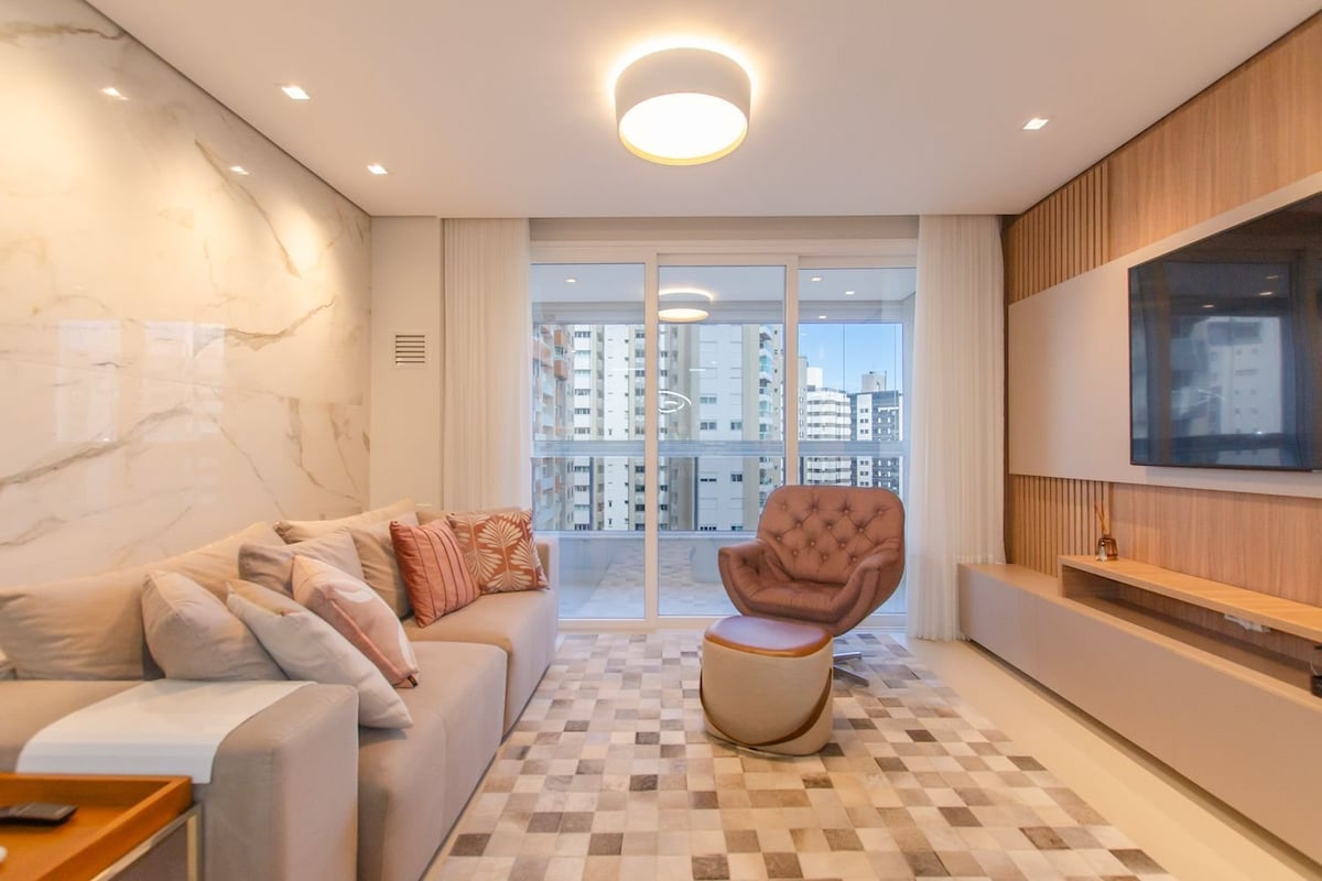 Bienvenido a nuestro lujoso apartamento de dos dormitorios, uno de ellos en suite, con impresionantes vistas a la ciudad y al mar. Moderno, con electrodomésticos completos, cocina equipada, aire acondicionado y lavadora. Decoración sofisticada y cálida. Ubicación céntrica, cerca del Pátio Milano, con acceso exclusivo a la piscina, gimnasio, sauna. Ya sea por descanso, placer o negocios, nuestro apartamento en Florianópolis ofrece una estancia inolvidable. ¡Siéntete como en casa en tu hogar temporal!