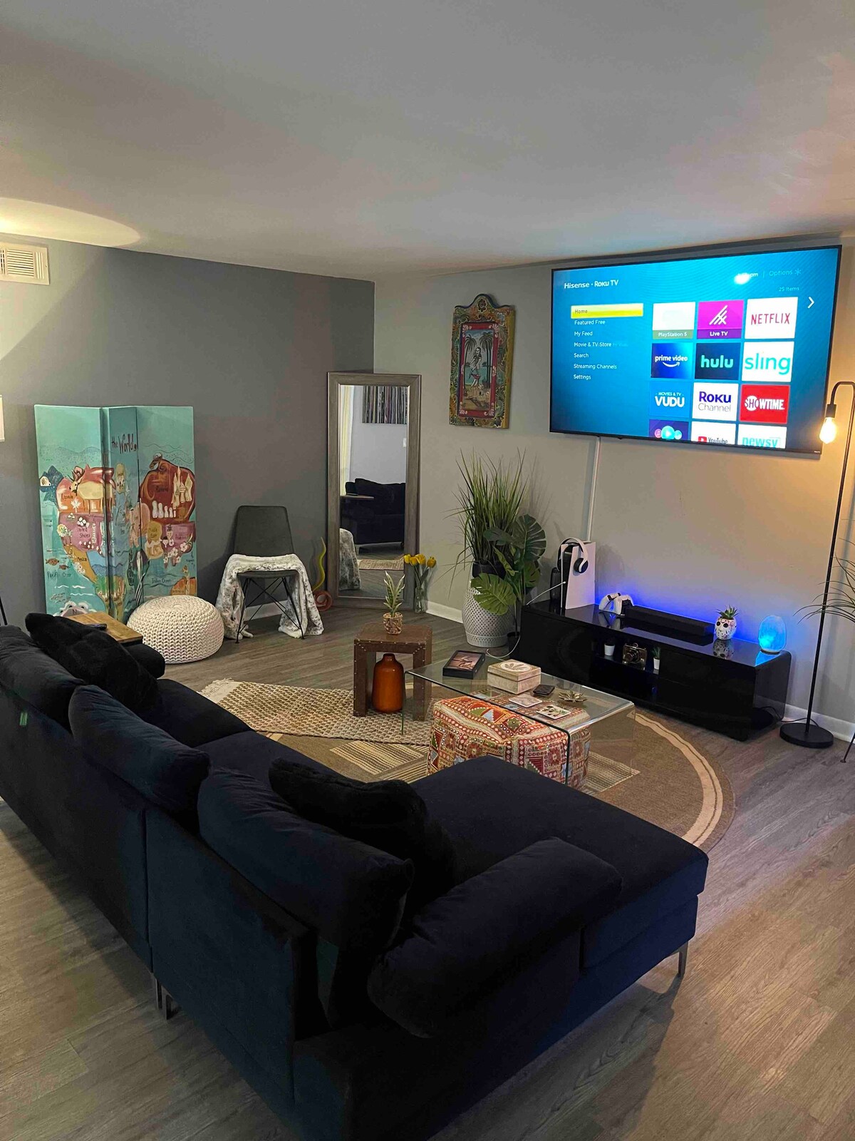 Welcome to The Pilots Den! HOST PAYS SERVICE FEES Thoughtfully designed so that all spaces are used to their full potential. Open & modern, shared living & kitchen spaces have enough room to entertain 2-4 guests. Lux, retro touches & cozy designs bring this wonderful stay to life. This guest suite comes fully equipped, the kitchenette has a coffee pot/skillet/toaster oven & icemaker. Additional ammenities include; the fridge w freezer, waffle maker, blender, bluetooth speaker in bathroom.