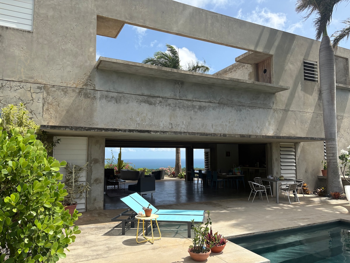 Este escondite tropical, diseñado por el aclamado arquitecto John Hix, es un oasis tranquilo situado en lo alto de una colina ventosa con vistas impresionantes del Océano Atlántico al norte y al Caribe al sur. El loft cuenta con terraza privada, ducha al aire libre, cocina bien equipada, sábanas de alto número de hilos, toallas de felpa extragrandes, wifi fuerte y piscina compartida única. A pesar de la privacidad de la propiedad, las mejores playas, restaurantes y senderos de Vieques están a pocos minutos.