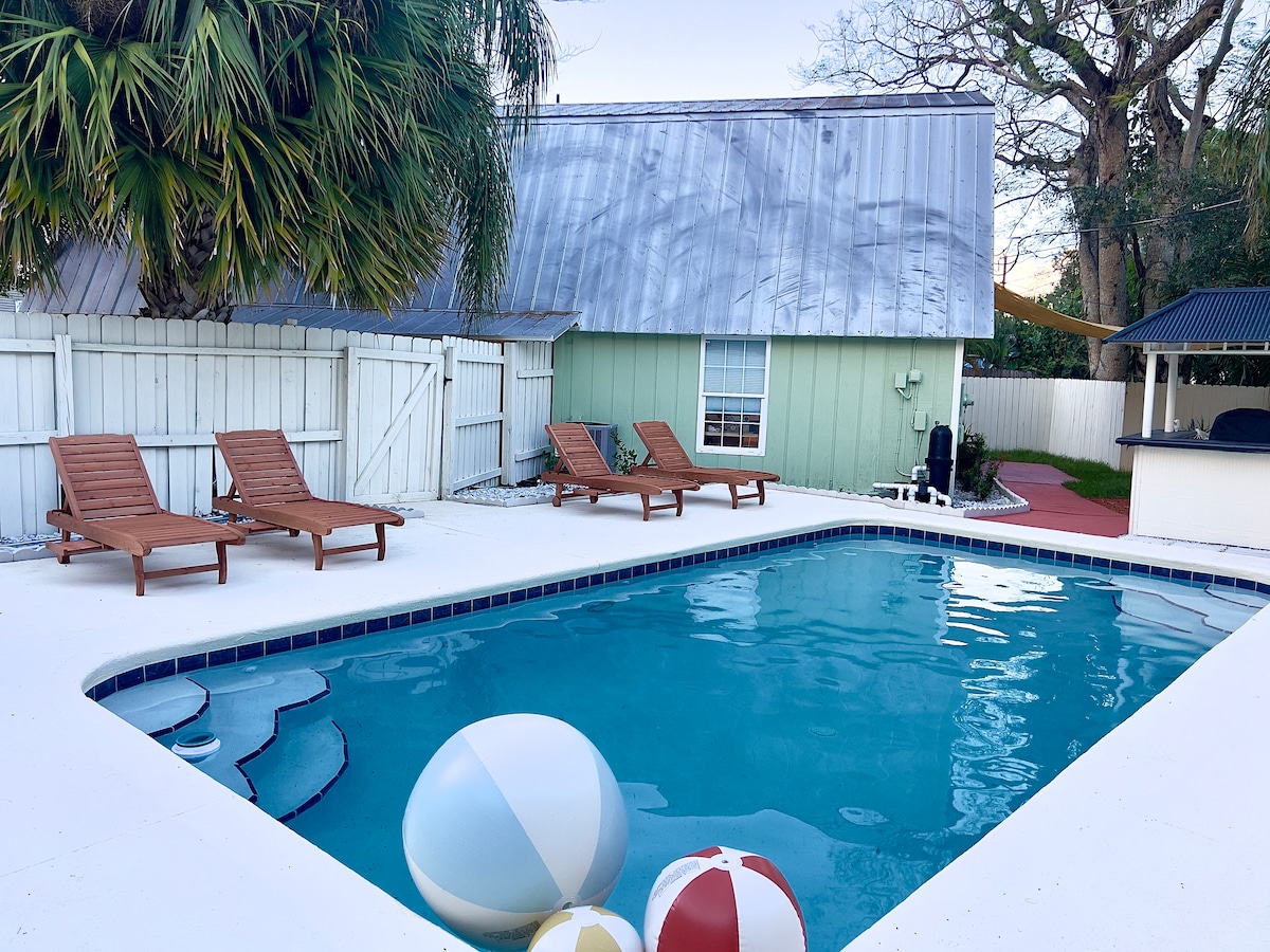 Casa en Vero Beach a 15 minutos de las playas. Mezcla única de encanto rústico y confort moderno en nuestra casa de estilo granero en Vero Beach. Servicios: sala de juegos con mesa de billar, juegos de mesa y juegos de arcade. Oasis en el patio trasero: relájate junto a la piscina, con un bar tiki y una parrilla eléctrica. Dormitorios grandes: camas tamaño king o queen, colchones nuevos, cortinas opacas y TV en cada dormitorio. Cocina completa: todo lo necesario para preparar comidas y entretenerse. Excelente ubicación: fácil acceso a las playas y al centro de la ciudad.
