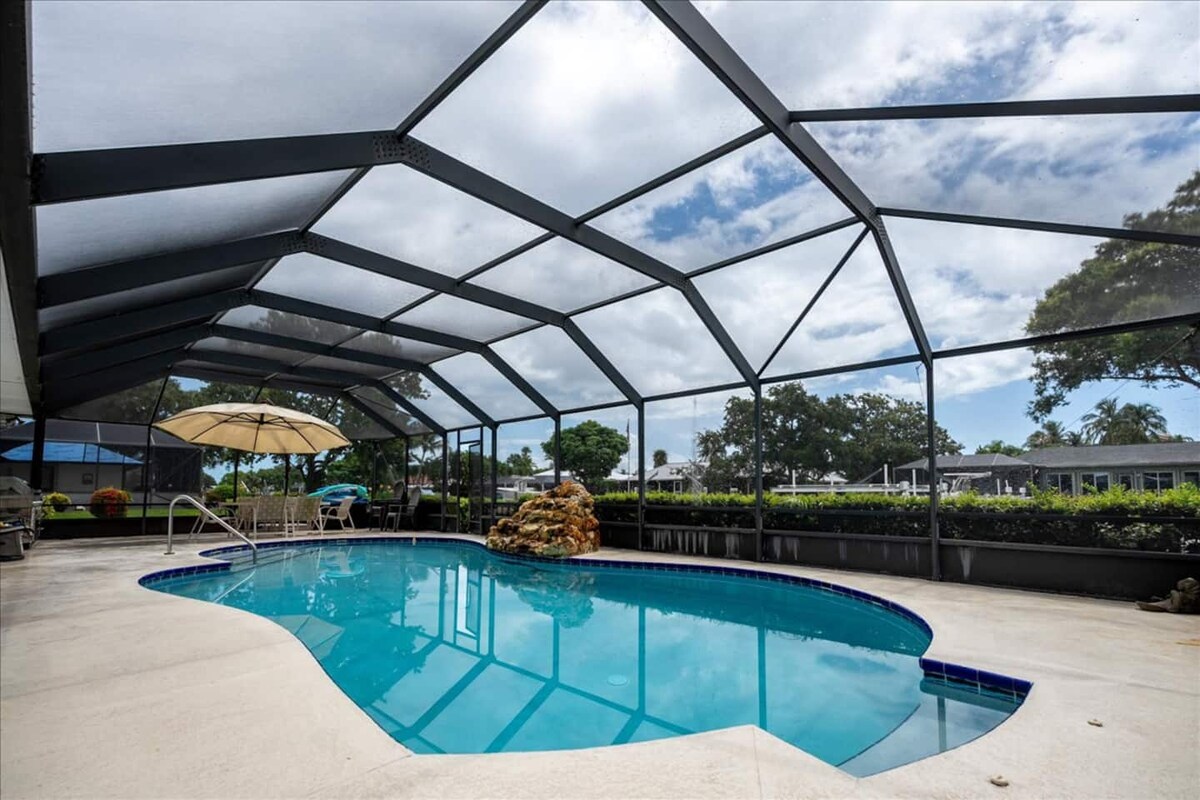 Situada en un lote doble, esta casa con piscina climatizada y barbacoa de gas al aire libre ofrece todo lo que necesitas en unas vacaciones tropicales. Casa actualizada de 3 habitaciones y 2 baños con planta dividida. El patio trasero está completamente vallado, garantizando total privacidad. El lanai protegido con una mesa para 6 personas es perfecto para cenar al aire libre después de un día descansando junto a la piscina. Internet de alta velocidad con televisores inteligentes. La cocina está equipada con utensilios de cocina, si quieres cocinar en casa o estás a pocos minutos de la escena gastronómica de Vero Beach.