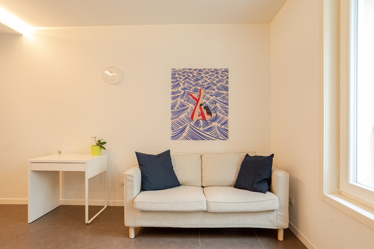 Lindo apartamento estudio con terraza privada, ¡recién renovado! Lugar perfecto para profesionales en movimiento, parejas o cualquier persona que busque comodidad, conveniencia y ambiente relajado después de un día ajetreado. Ubicación, ubicación, ubicación: a 10 minutos del Centro de Exposiciones de Pordenone y de la autopista a Lignano y Bibione. Oderzo a 18 km, Conegliano a 30 km, Aviano a 22 km. Todo lo que necesitas está a solo 1 km: cafeterías, panadería, cajero automático, supermercados y un casillero de Amazon 24/7. Estacionamiento gratuito justo enfrente del edificio.