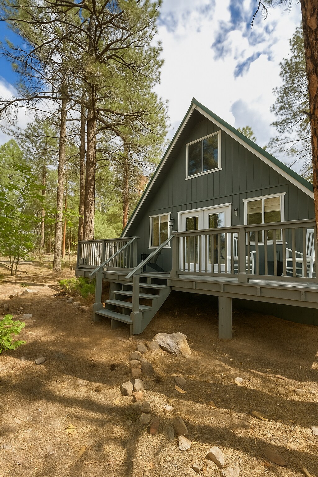 This rental is right between Showlow and Pinetop. The woodsy cabin is perfect for an individual, couple as well as small group or family. The cabin is pet friendly. The upstairs loft is a hit with children and additional sleepers. Guests may access the clubhouse and it’s immenities. The two seating areas inside as well as outdoor firepit allow for diversity of gathering. The community is quiet, friendly and highly wooded. Smart tvs and starlink Wi-Fi, and Firepit. Central ac and heating.
