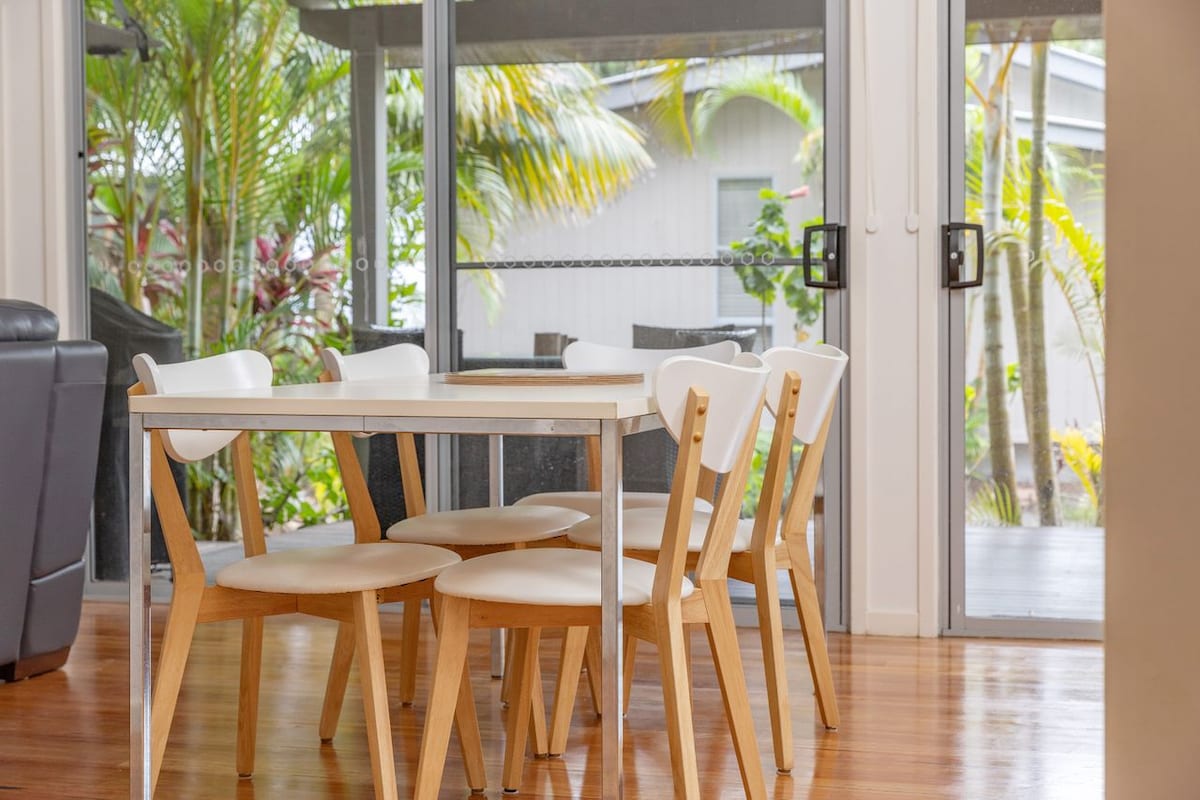 Palm House es una espaciosa (330 metros cuadrados internos), hermosa e informal casa de playa australiana situada entre las exuberantes palmeras verdes y eucaliptos en Smiths Lake. Todas las mejores playas están a 5-10 minutos en coche de la casa, y Smiths Lake está a 5-10 minutos a pie. Un ambiente playero moderno y relajado. Una casa para relajarse y entretenerse con amigos y familiares.