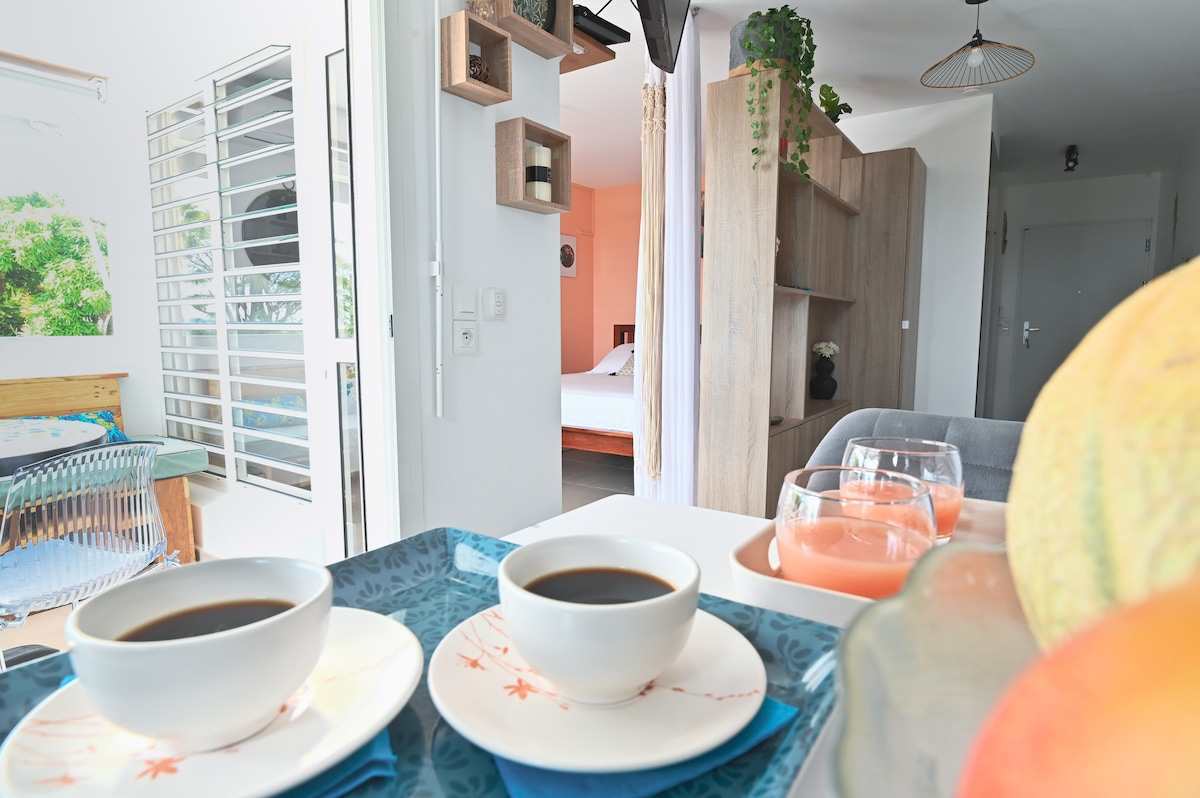 ¡Reserve su semana! ¡Mini estudio, maxi vibes! Un capullo tan acogedor que puede que se olvide de irse😍. Ideal para una pareja o 3 viajeros como máximo: relajación, sol, mojitos improvisados… o trabajo, si realmente es necesario como profesional 😉. A 5 minutos de las playas, restaurantes y administraciones (CTM, universidad, EDF… sí, incluso ellos⚡). Autobús a dos pasos, aire acondicionado en la parte superior, TV conectada y cama paraguas/cama supletoria disponible y totalmente equipada. ¡Deje las maletas! 😎Disfrute del momento.