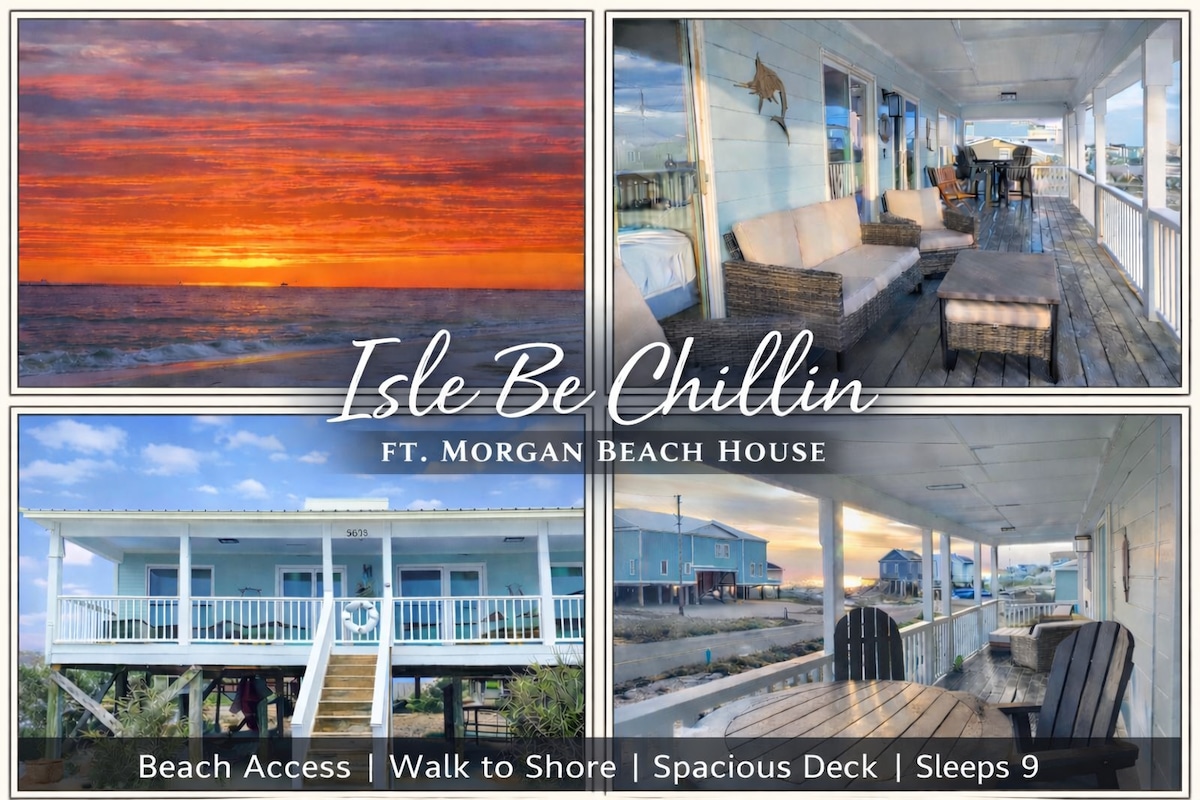 When thinking of a name to describe our quaint, remote beach cottage “Seaclusion” was a perfect fit. Seaclusion is in Fort Morgan, AL and 19 miles from the tourist attractions in busy Gulf Shores. There are no roads to cross as the cottage is located on a private dead-end street with a beach access. Located only four houses back at about 200 yards, you can still enjoy a beach view with your morning coffee or watch the dolphins swim from the balcony.