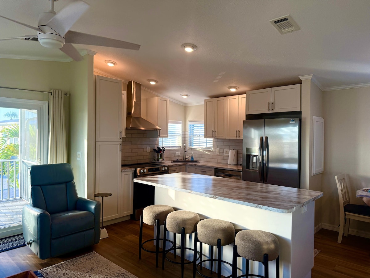 The Turtle Suite at The Loft FMB is a peaceful coastal suite with a plush king bed, spa-style dual rainfall shower, and a fully stocked kitchenette. Located in the heart of downtown Fort Myers Beach, you’ll be just a 2–3 minute walk to the sand, restaurants, Time Square, and all the action. Enjoy your own entrance and deck, perfect for unwinding after a day by the water. This modern, comfortable retreat offers an ideal blend of style, comfort, and unbeatable location.