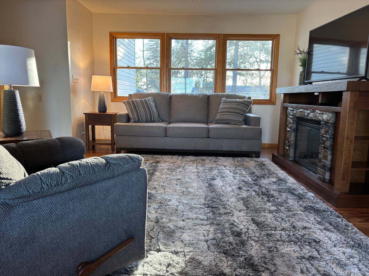 Escápese a una cabaña moderna y completamente nueva, escondida en el bosque, a pocos minutos de la zona de Brainerd Lakes. Diseñado con acabados limpios, luz natural y detalles acogedores, este es el lugar perfecto para relajarse, recargar energías y disfrutar del tiempo juntos. El espacio habitable de concepto abierto cuenta con grandes ventanales, una hermosa cocina y una cómoda sala de estar organizada en torno a la chimenea, perfecta para disfrutar de mañanas tranquilas, noches de juegos o para relajarse después de un día al aire libre.